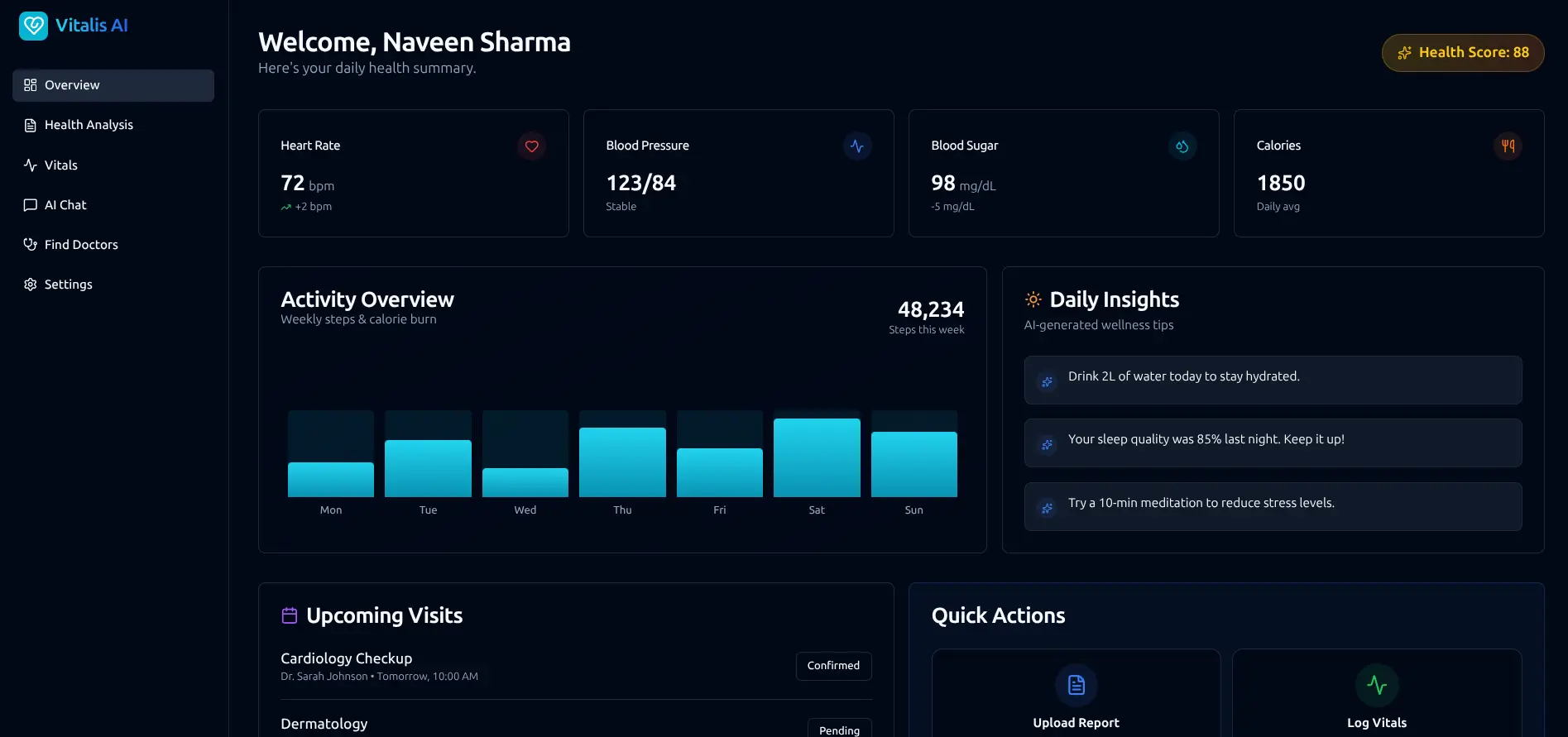 AI-powered personal health companion for tracking vitals, medication, and wellness trends.